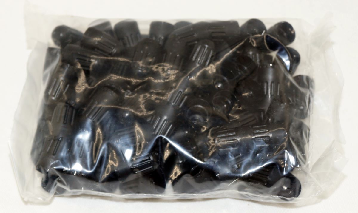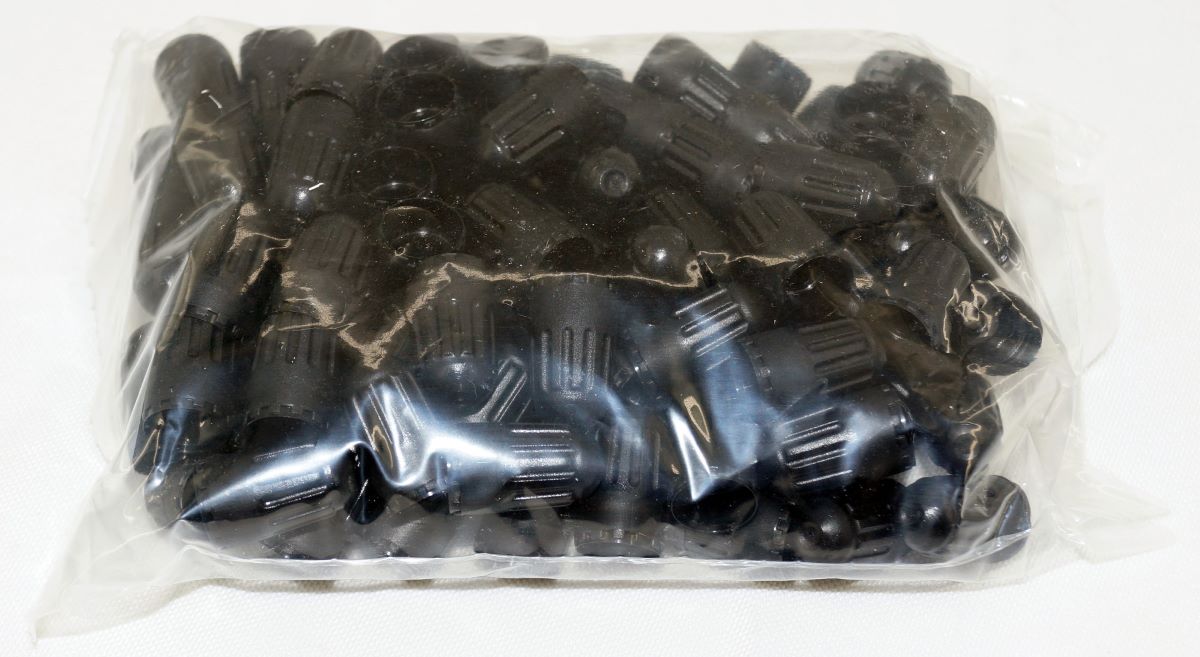 Long Black Plastic Sealing Cap, Fits Schrader TPMS Rubber Valve, 100 Pack