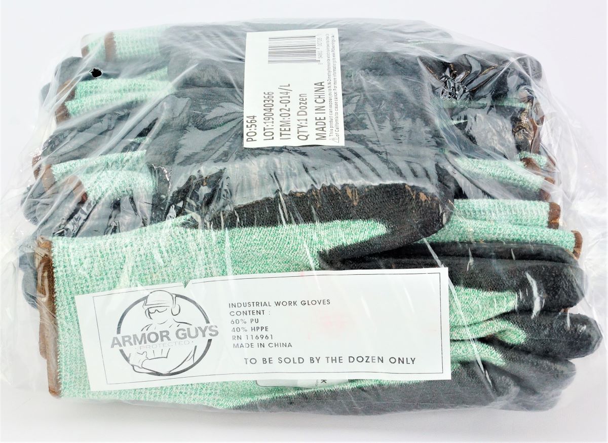 12 Pack Armor Guys 02-014 (large) 1 Excel, 13g, Black Polyurethane Palm Coating (One Pair), L, Green