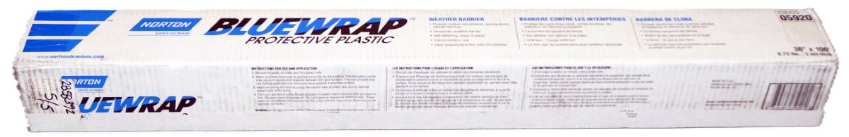 Designed as a temporary weather barrier for a broken window, windshield, sunroof, sprung door or missing panel, Norton Blue Wrap keeps the interiors of damaged vehicles dry and clean when stored outside. Should not be baked or installed on wet or damp surfaces.