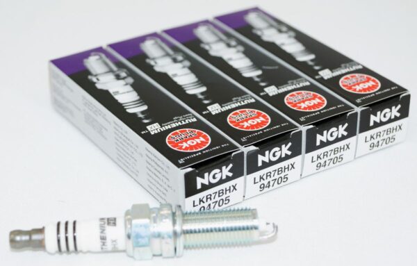 NGK Ruthenium HX is designed for newer engines which demand high ignitability. Projected Square Platinum Electrode (PSPE) design promotes spark energy concentration and ignites a wider range of air-fuel ratios, offering improved performance in rich or lean engine conditions. 0.4mm Ruthenium alloy fine wire center electrode and 0.8mm platinum fine wire ground electrode. Trivalent metal platinum provides superior anti-corrosion and anti-seizing properties. Corrugated ribs prevent flashover. Pure alumina silicate ceramic insulator provides superior strength and better heat transfer. Copper core aids in heat removal.